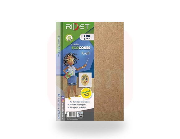 O Bloco Ecocores A3 Kraft 100g da Ridet é ideal para quem busca qualidade, versatilidade e consciência ambiental em projetos artísticos, escolares ou profissionais. Com 50 folhas no formato A3 (29,7 x 42 cm), este bloco oferece amplo espaço para criações detalhadas, colagens, esboços e técnicas mistas.